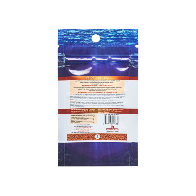 La formule NorthFin Super Betta contient une forte teneur en krill, un exhausteur de couleur naturel. Ce granulé hautement digestible est riche en protéines, acides aminés, vitamines et minéraux pour favoriser la croissance et le développement de nombreux bettas.